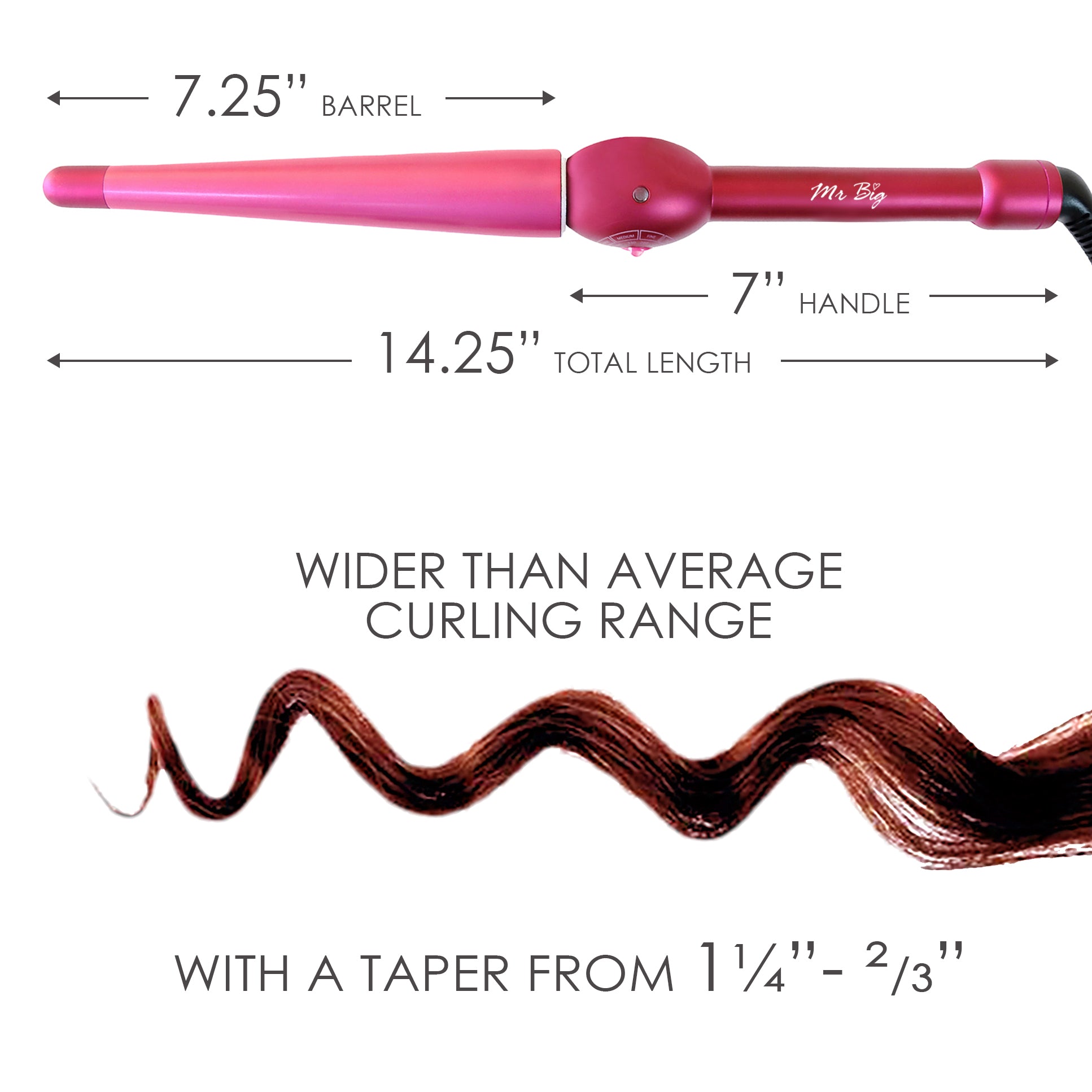 You'll love our tapered curling wand! The long barrel has a ceramic coating to protect your long hair. The conical shape has widest range on the market from 1 ¼” down to ⅔” for making natural looking waves and curls. Includes a heat-resistant glove and silicone pad plus two hair clips. 6 temperature settings. Dual voltage. Auto shut-off. For all hair types.