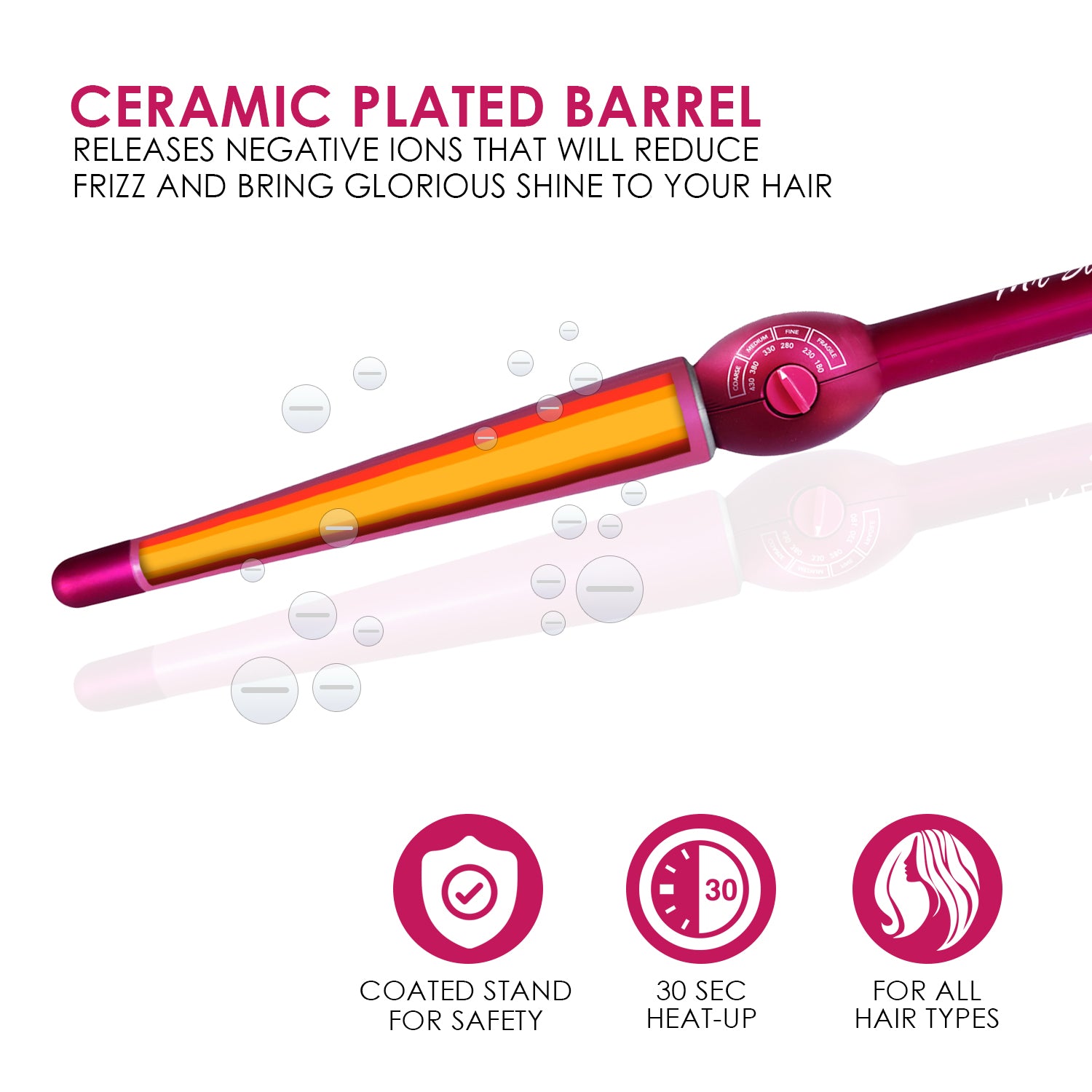 FAST STYLING - Long tapered barrel will reduce curling time! Triple-plated ceramic barrel will protect your precious hair.
